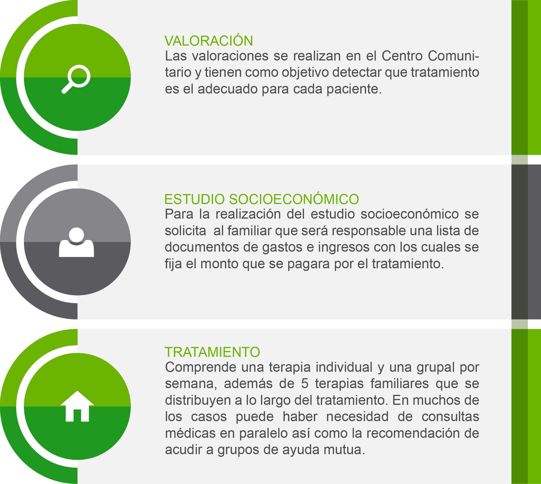 ¿Cuanto tiempo dura el tratamiento? Tiene una duración aproximada de 3 meses pero puede varias dependiendo de cada paciente una vez concluido se recomienda continuar acudiendo a los grupos terapéuticos de post tratamiento que se realizan en las instalaciones del Centro Comunitario Xalapa.